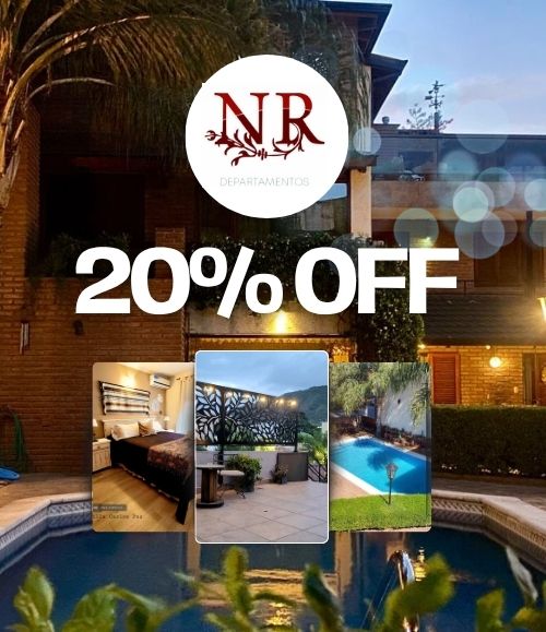20% DE DESCUENTO EN DEPARTAMENTOS NR Promo exclusiva, con la compra de tu pasaje obtené el 20% de descuento en alojamiento NR departamentos es un complejo ubicado en el centro de Villa Carlos Paz, Córdoba, Argentina. Creado y atendido por sus dueños desde hace 32 años, donde...